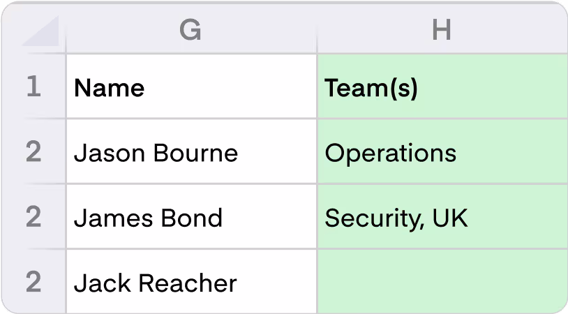 If a person is not in a team, it will be empty. The "Team(s)" column will be after the “Name” column.