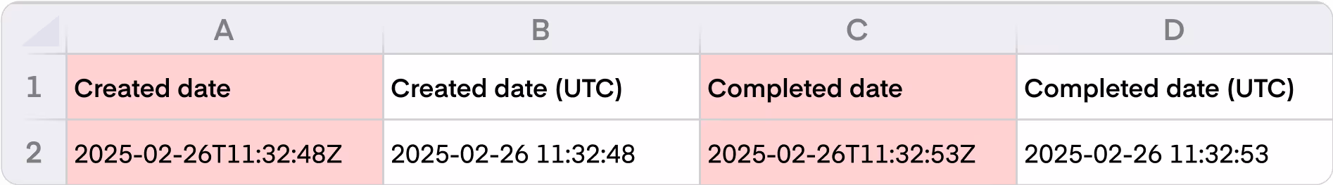 We removed the created date and completed date, as they have been replaced by the new UTC date fields that are Excel-friendly.